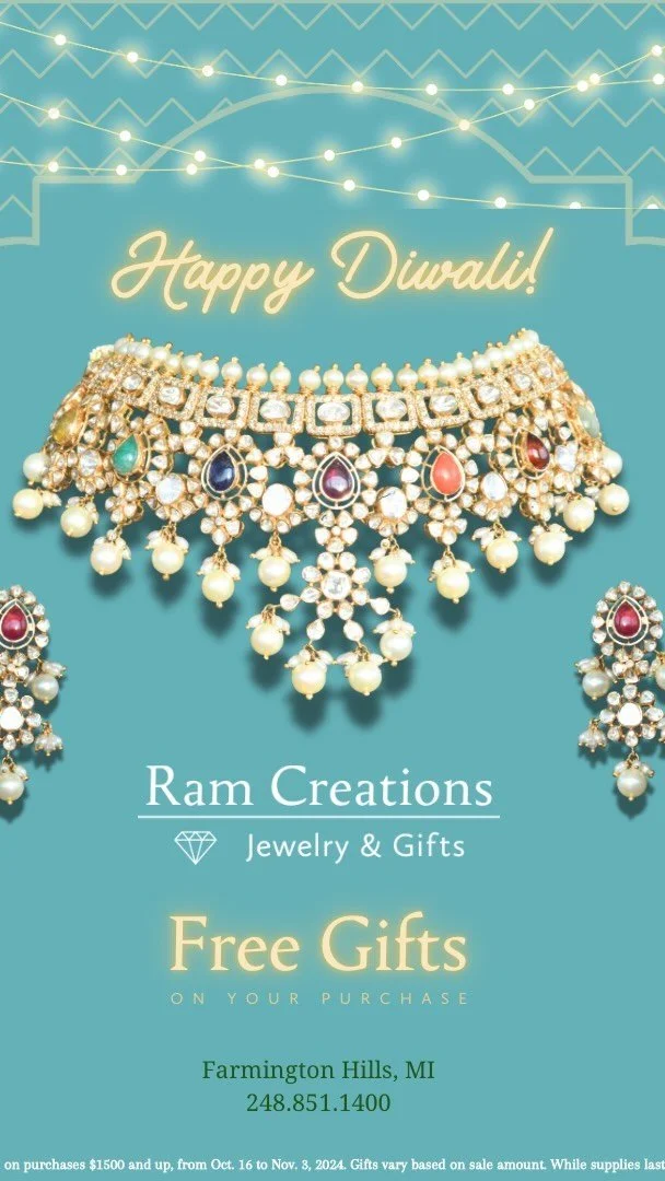 Our Diwali sale has started! Come shop our new collection in 22KT gold, Diamond, and Uncut Diamonds, and receive free gifts on your jewelry purchases*: